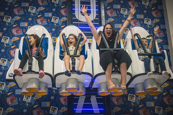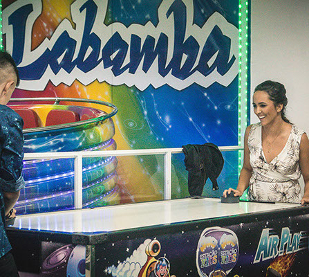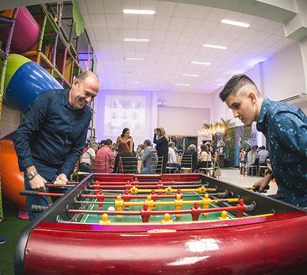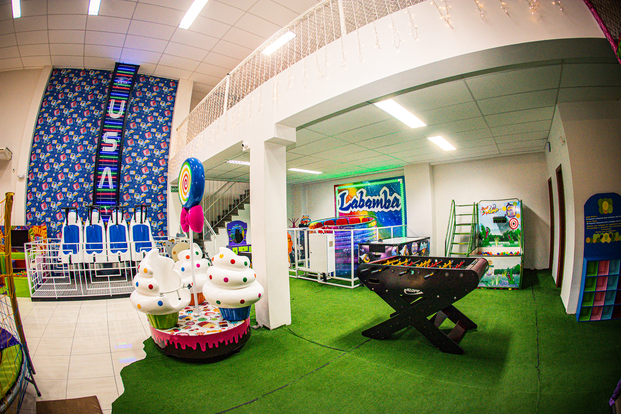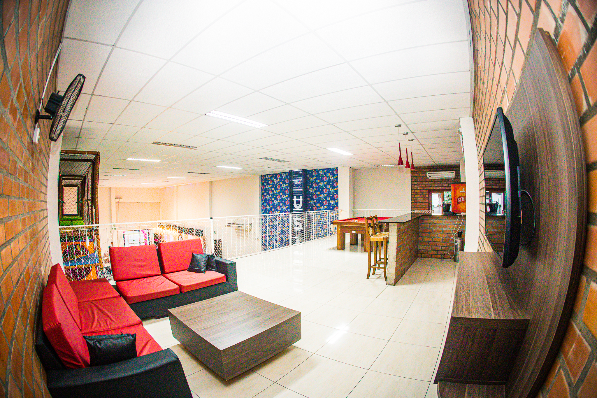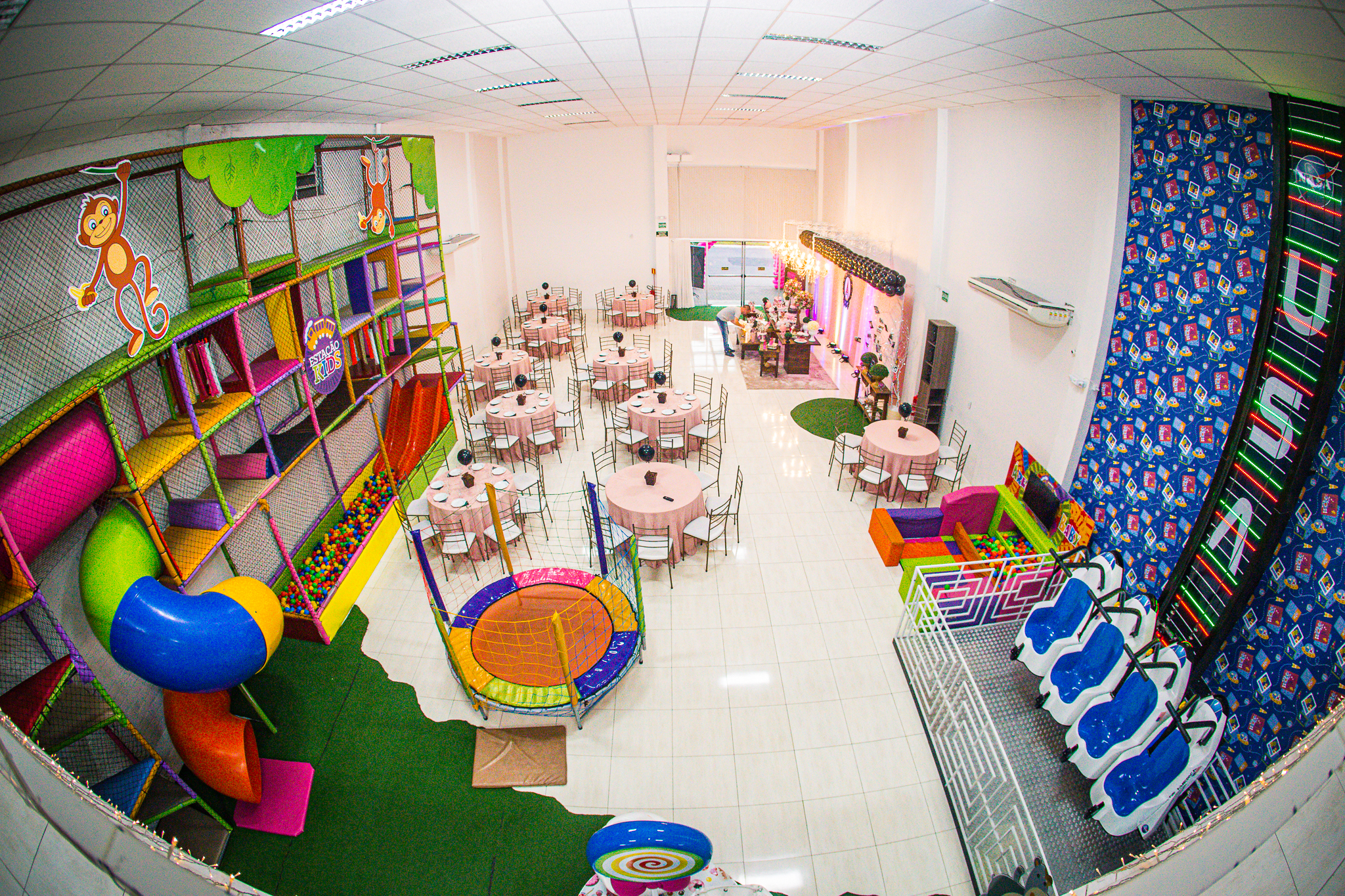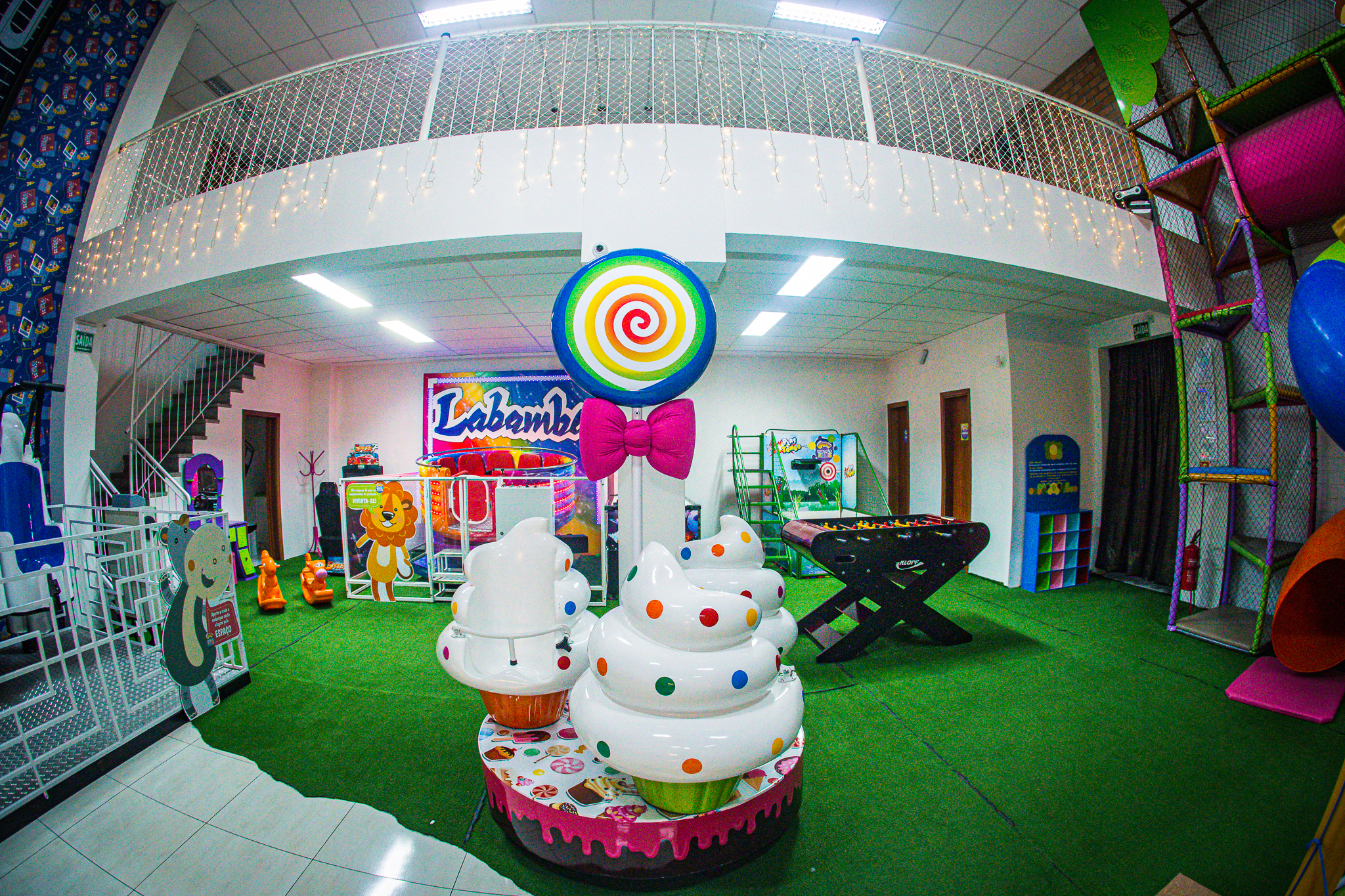 Contamos com ambiente climatizado, equipe de profissionais especializados e entretenimento para todas as idades! Oferecemos um amplo espaço divididos entre salão principal e ÁREA VIP para adultos (mezanino). Para garantir a diversão, contamos com um kid play com escorregador, piscina de bolinhas, tubo caracol e arvorismo; Cama elástica; Air game; Tombo legal; Camarim; Simulador de corrida, Mesa de fla-flu; Àrea baby com televisão; La Bamba; Torre Espacial e Carrossel de cupcake. Além disso, disponibilizamos um espaço super aconchegante com bar, mesa de sinuca, sofás e televisão com transmissão de jogos e filmes.